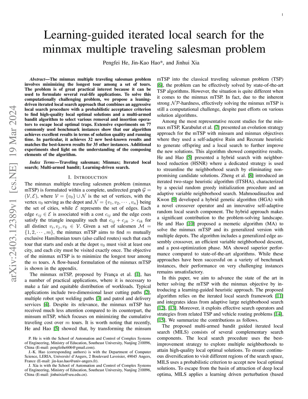 Learning-guided iterated local search for the minmax multiple traveling
