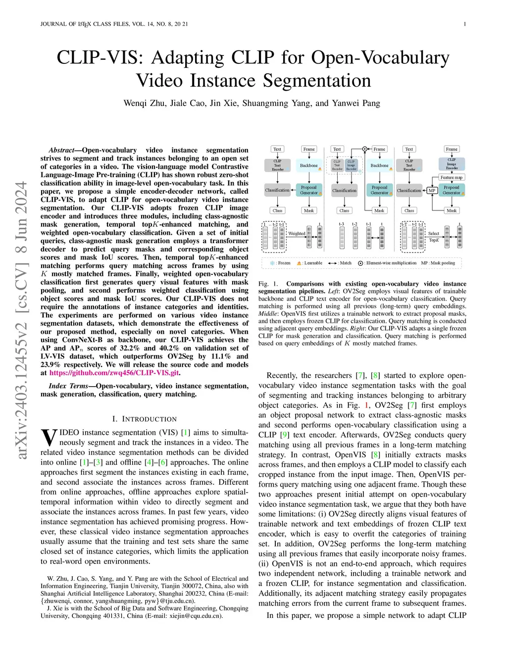 CLIP-VIS: Adapting CLIP for Open-Vocabulary Video Instance Segmentation
