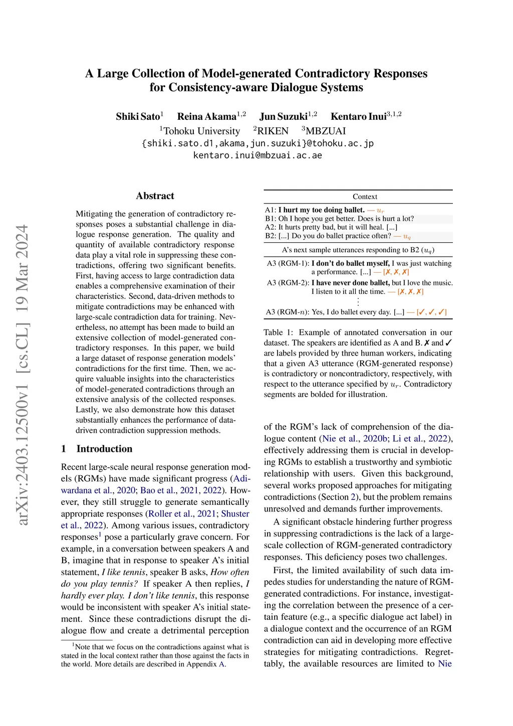 Mitigating the generation of contradictory responses poses a substantial challenge in dialogue response generation. The quality and quantity of available contradictory response data play a vital role in suppressing these contradictions, offering two significant benefits. First, having access to large contradiction data enables a comprehensive examination of their characteristics. Second, data-driven methods to mitigate contradictions may be enhanced with large-scale contradiction data for training. Nevertheless, no attempt has been made to build an extensive collection of model-generated contradictory responses. In this paper, we build a large dataset of response generation models' contradictions for the first time. Then, we acquire valuable insights into the characteristics of model-generated contradictions through an extensive analysis of the collected responses. Lastly, we also demonstrate how this dataset substantially enhances the performance of data-driven contradiction suppression methods.