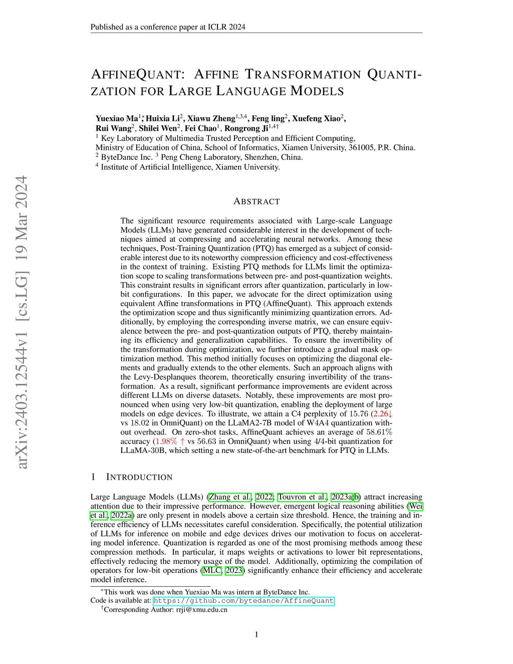 AffineQuant: Affine Transformation Quantization for Large Language