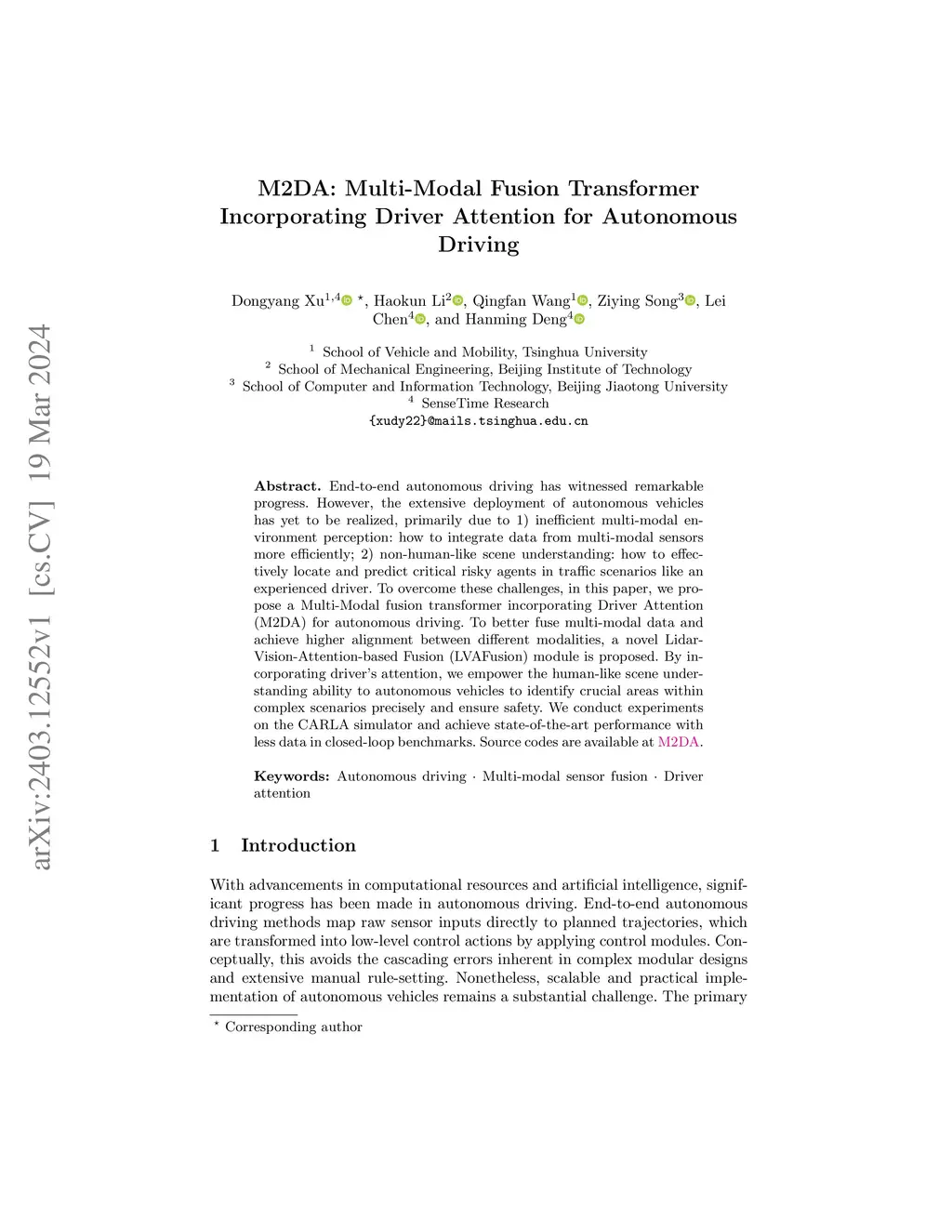 M2DA: Multi-Modal Fusion Transformer Incorporating Driver Attention for