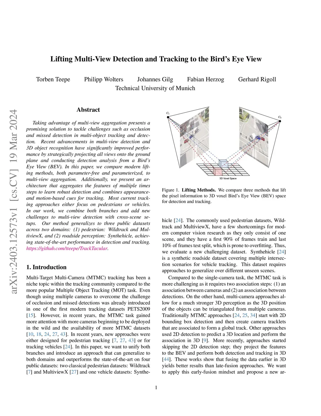 Taking advantage of multi-view aggregation presents a promising solution to tackle challenges such as occlusion and missed detection in multi-object tracking and detection. Recent advancements in multi-view detection and 3D object recognition have significantly improved performance by strategically projecting all views onto the ground plane and conducting detection analysis from a Bird's Eye View. In this paper, we compare modern lifting methods, both parameter-free and parameterized, to multi-view aggregation. Additionally, we present an architecture that aggregates the features of multiple times steps to learn robust detection and combines appearance- and motion-based cues for tracking. Most current tracking approaches either focus on pedestrians or vehicles. In our work, we combine both branches and add new challenges to multi-view detection with cross-scene setups. Our method generalizes to three public datasets across two domains: (1) pedestrian: Wildtrack and MultiviewX, and (2) roadside perception: Synthehicle, achieving state-of-the-art performance in detection and tracking. https://github.com/tteepe/TrackTacular