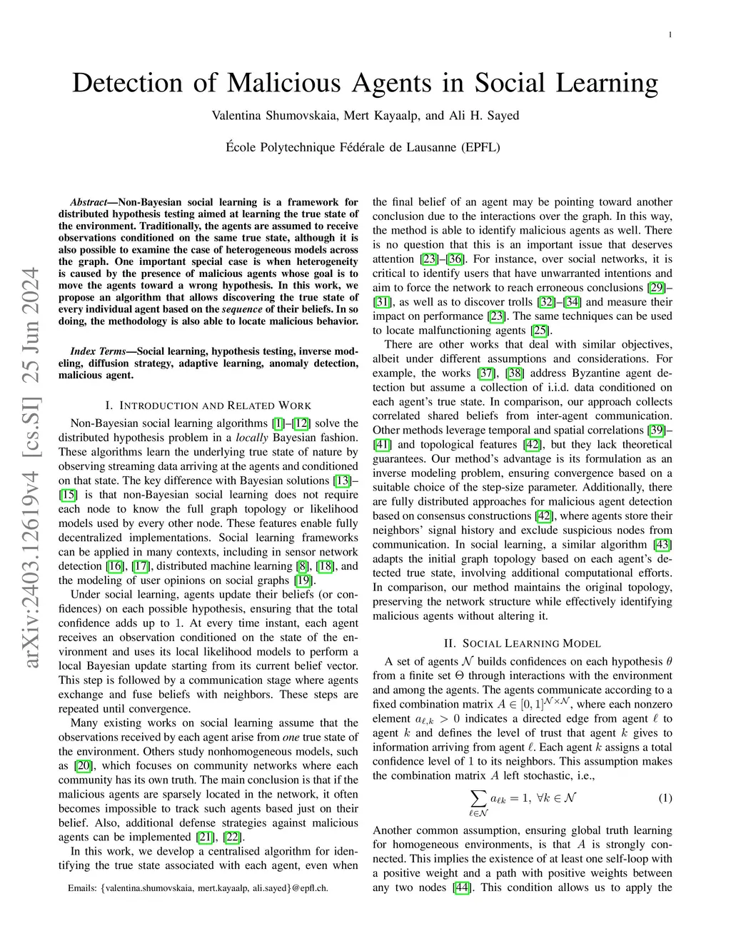 Detection of Malicious Agents in Social Learning