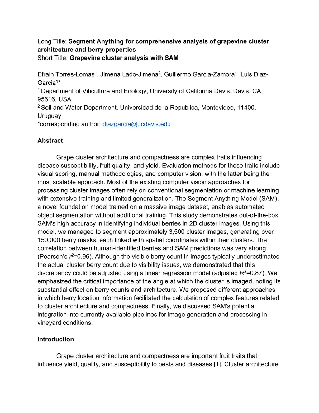 Grape cluster architecture and compactness are complex traits influencing disease susceptibility, fruit quality, and yield. Evaluation methods for these traits include visual scoring, manual methodologies, and computer vision, with the latter being the most scalable approach. Most of the existing computer vision approaches for processing cluster images often rely on conventional segmentation or machine learning with extensive training and limited generalization. The Segment Anything Model (SAM), a novel foundation model trained on a massive image dataset, enables automated object segmentation without additional training. This study demonstrates out-of-the-box SAM's high accuracy in identifying individual berries in 2D cluster images. Using this model, we managed to segment approximately 3,500 cluster images, generating over 150,000 berry masks, each linked with spatial coordinates within their clusters. The correlation between human-identified berries and SAM predictions was very strong (Pearson r2=0.96). Although the visible berry count in images typically underestimates the actual cluster berry count due to visibility issues, we demonstrated that this discrepancy could be adjusted using a linear regression model (adjusted R2=0.87). We emphasized the critical importance of the angle at which the cluster is imaged, noting its substantial effect on berry counts and architecture. We proposed different approaches in which berry location information facilitated the calculation of complex features related to cluster architecture and compactness. Finally, we discussed SAM's potential integration into currently available pipelines for image generation and processing in vineyard conditions.