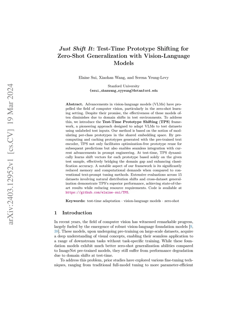 Just Shift It: Test-Time Prototype Shifting for Zero-Shot Generalization