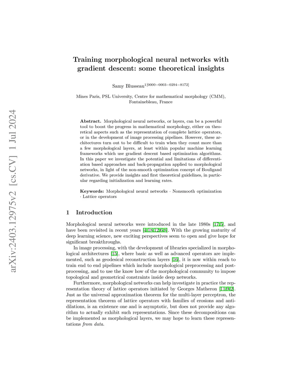 Training morphological neural networks with gradient descent: some