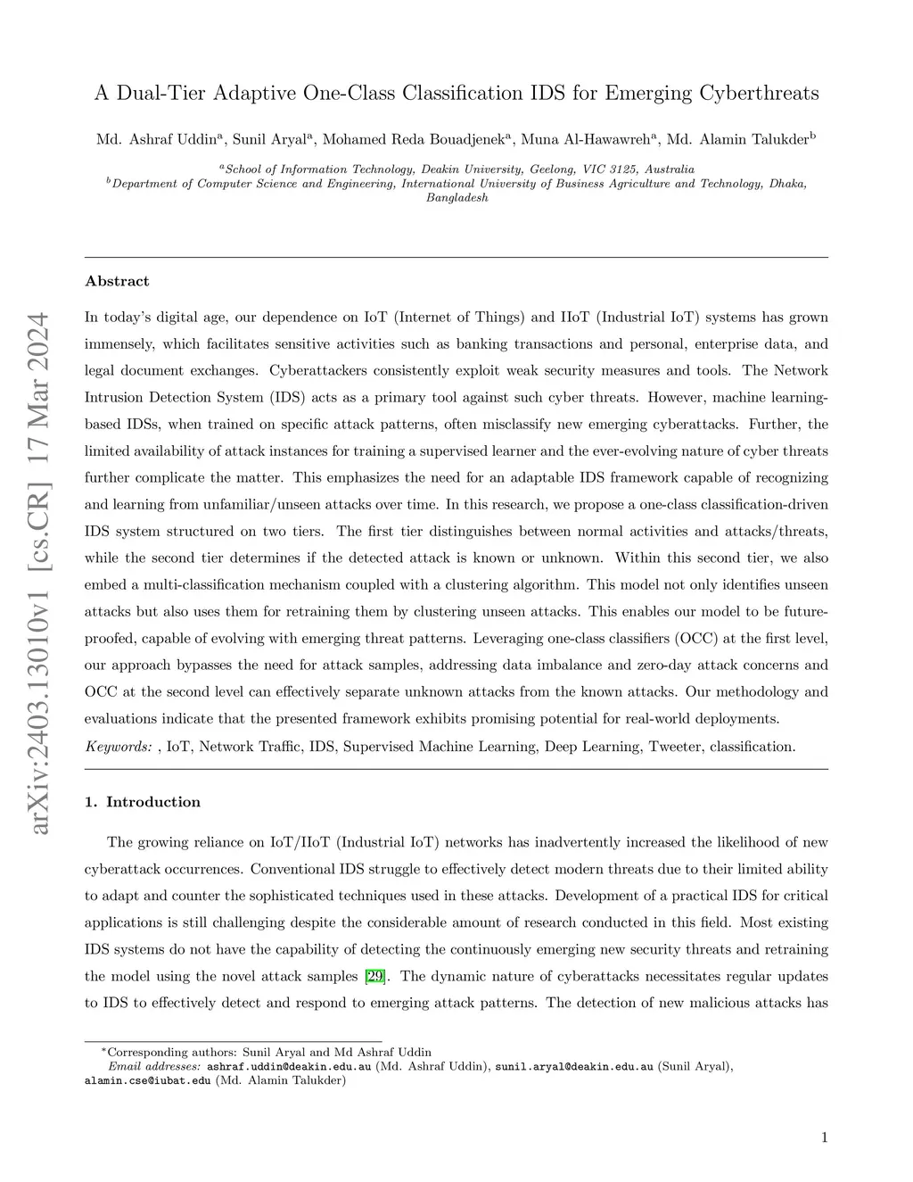 A Dual-Tier Adaptive One-Class Classification IDS for Emerging