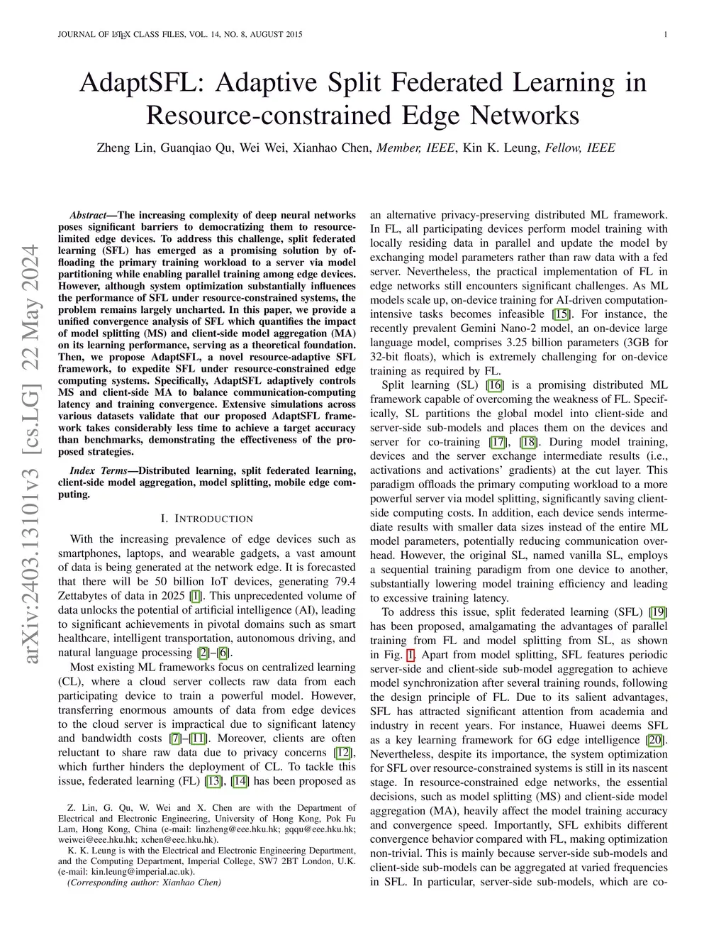 AdaptSFL: Adaptive Split Federated Learning in Resource-constrained Edge Networks