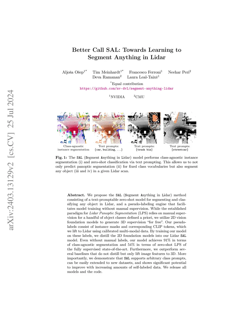 Better Call SAL: Towards Learning to Segment Anything in Lidar