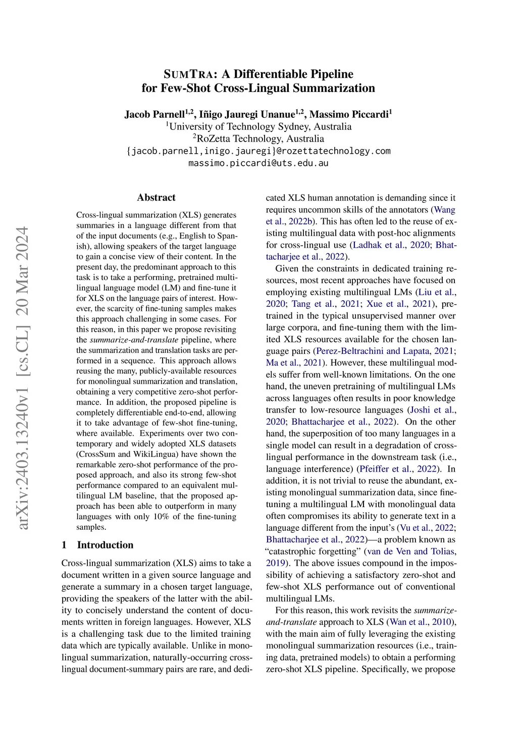 SumTra: A Differentiable Pipeline for Few-Shot Cross-Lingual