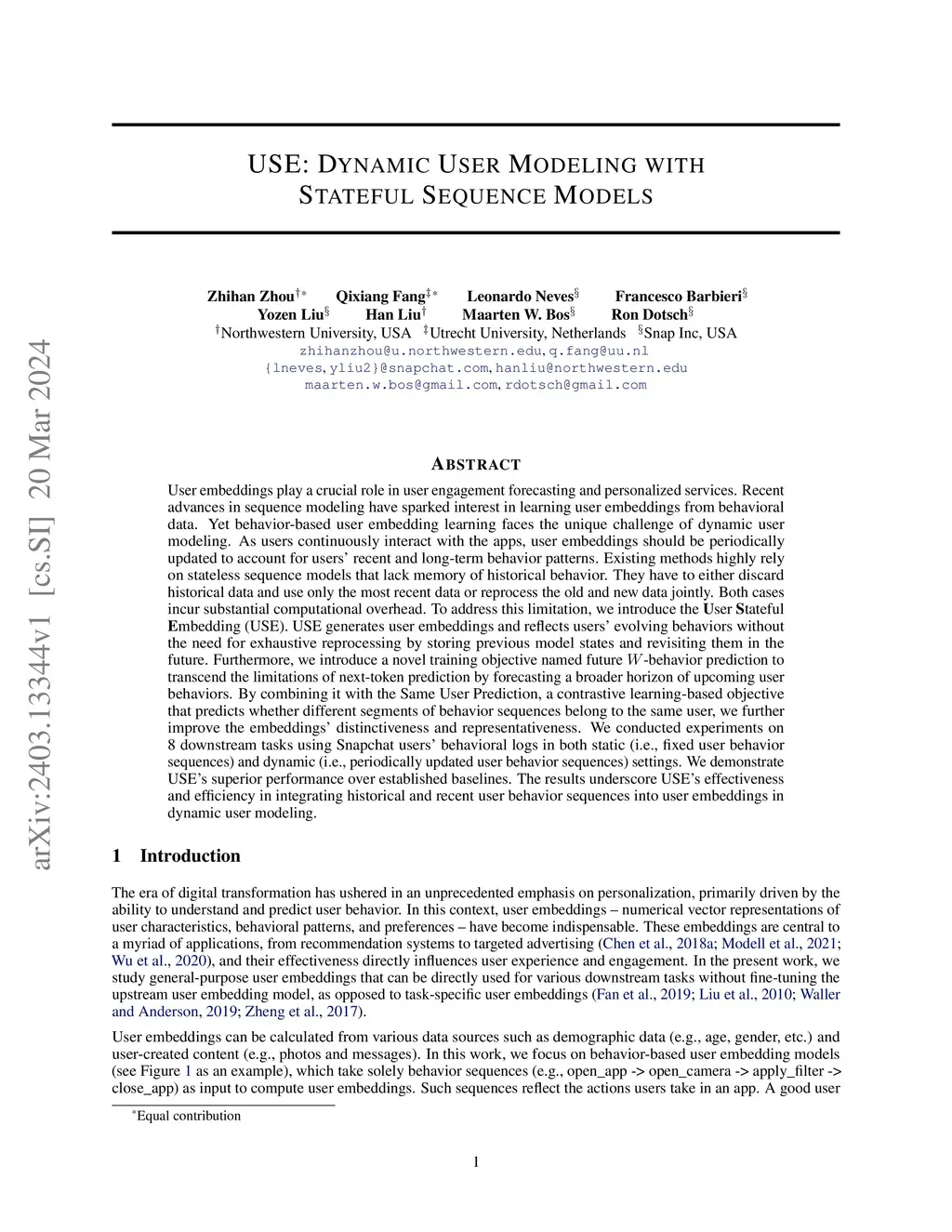 USE: Dynamic User Modeling with Stateful Sequence Models