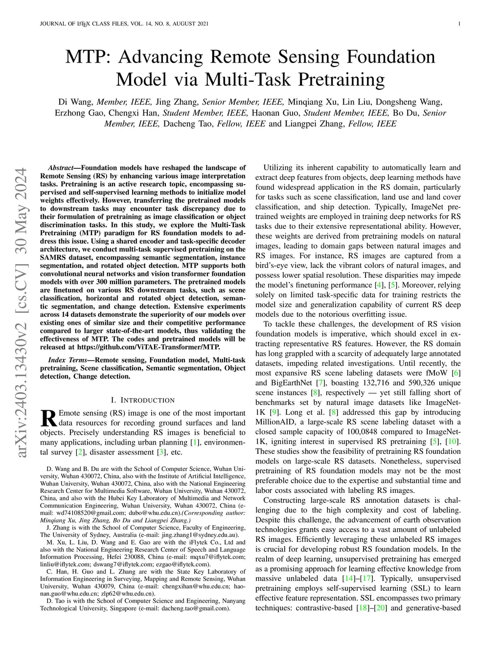 MTP: Advancing Remote Sensing Foundation Model via Multi-Task