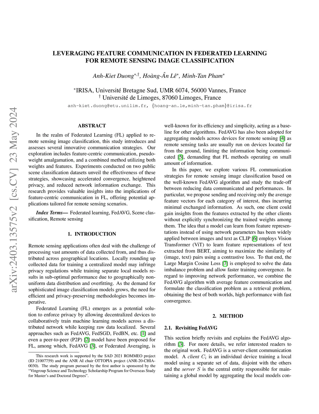 In the realm of Federated Learning (FL) applied to remote sensing image classification, this study introduces and assesses several innovative communication strategies. Our exploration includes feature-centric communication, pseudo-weight amalgamation, and a combined method utilizing both weights and features. Experiments conducted on two public scene classification datasets unveil the effectiveness of these strategies, showcasing accelerated convergence, heightened privacy, and reduced network information exchange. This research provides valuable insights into the implications of feature-centric communication in FL, offering potential applications tailored for remote sensing scenarios.