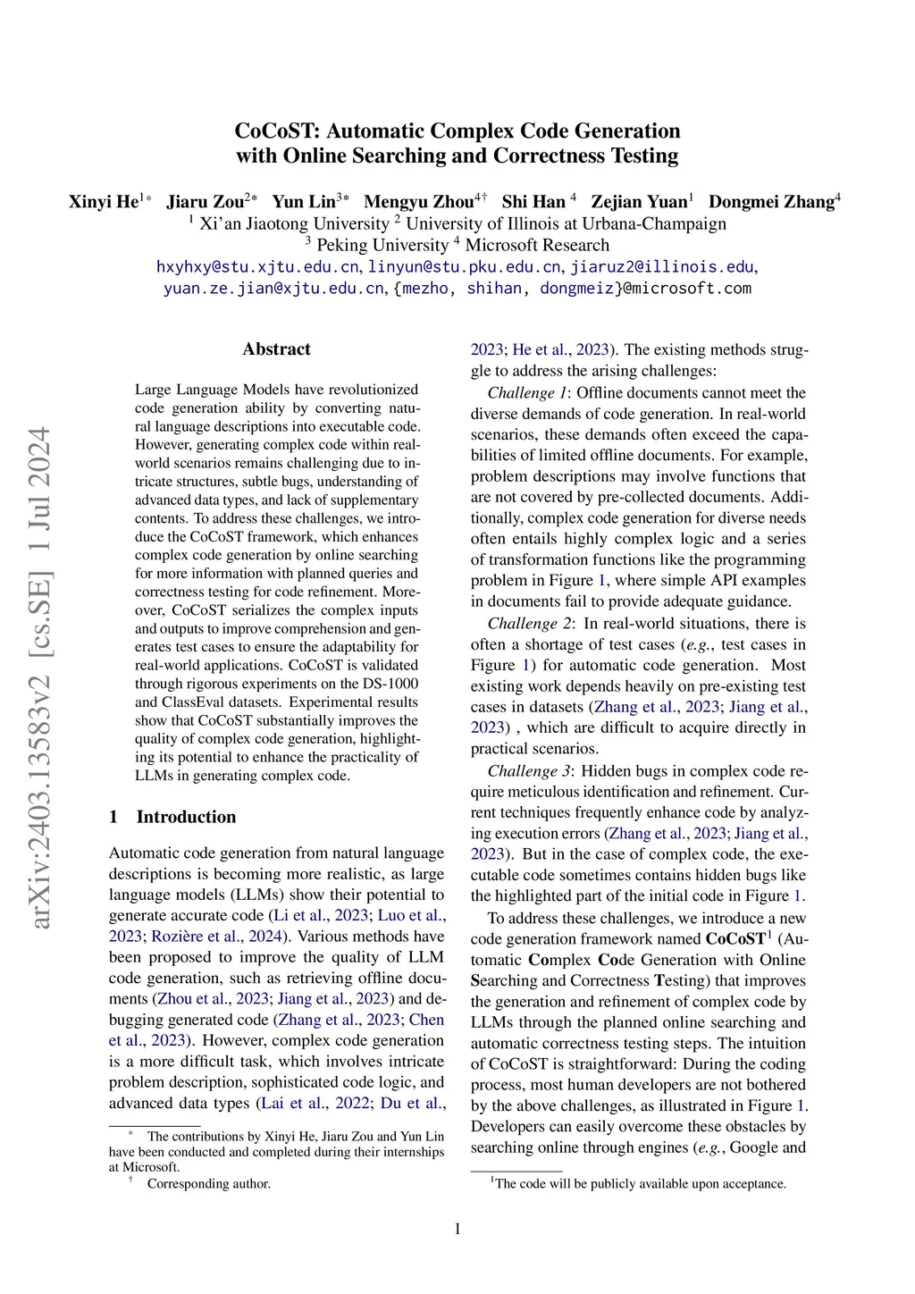 CoCoST: Automatic Complex Code Generation with Online Searching and
