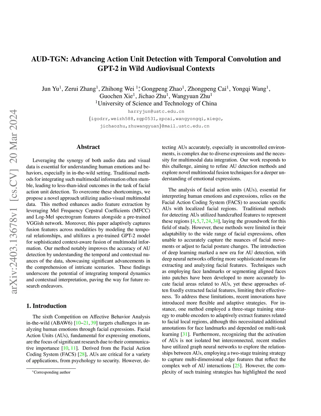 AUD-TGN: Advancing Action Unit Detection with Temporal Convolution and