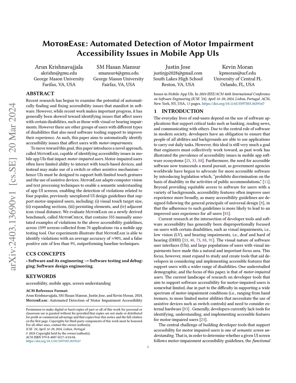 MotorEase: Automated Detection of Motor Impairment Accessibility Issues
