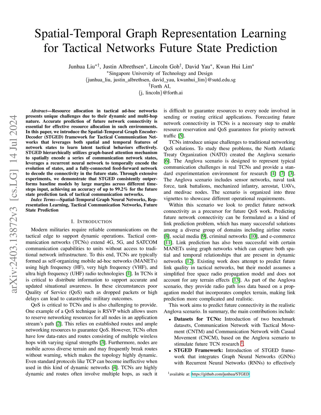 Spatial-Temporal Graph Representation Learning for Tactical Networks