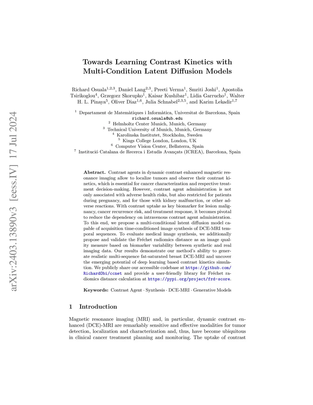 Towards Learning Contrast Kinetics with Multi-Condition Latent Diffusion