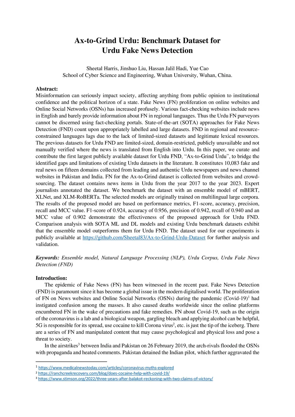Ax-to-Grind Urdu: Benchmark Dataset for Urdu Fake News Detection
