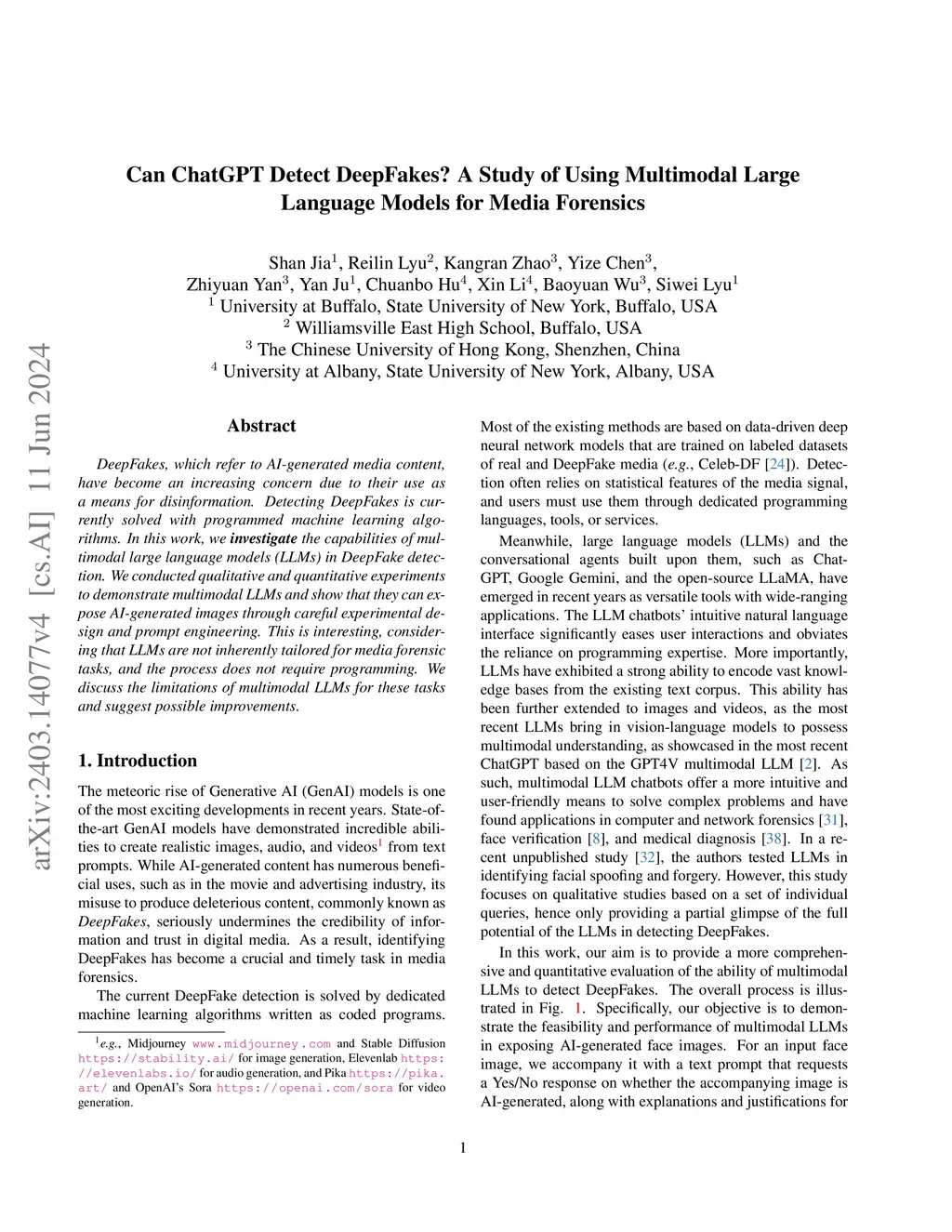Can ChatGPT Detect DeepFakes? A Study of Using Multimodal Large Language