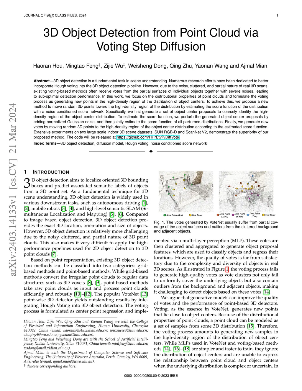 3D Object Detection from Point Cloud via Voting Step Diffusion