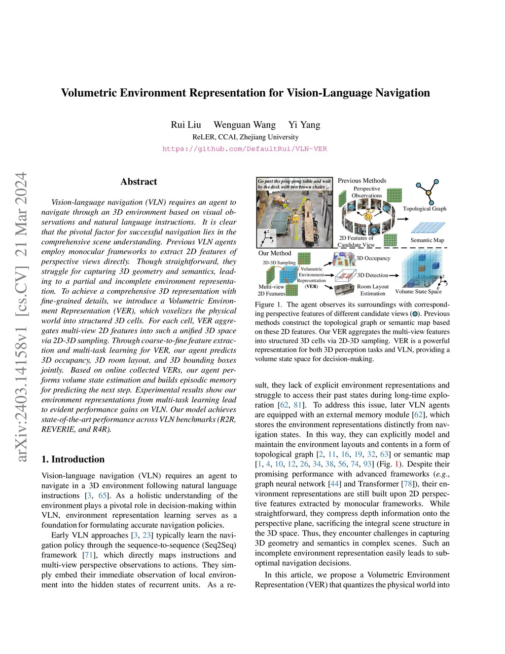 Volumetric Environment Representation for Vision-Language Navigation