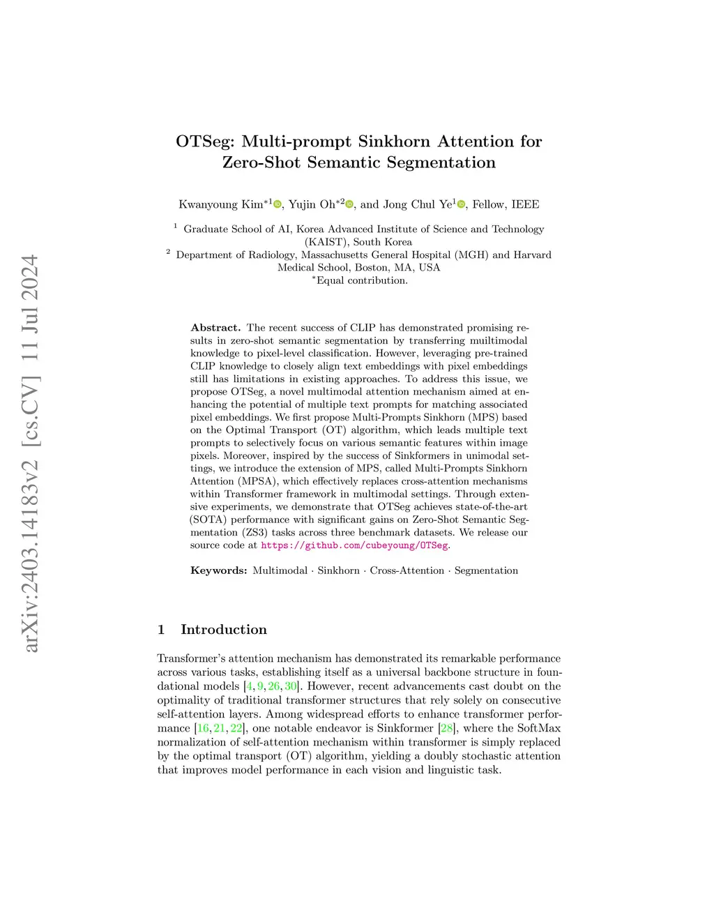 OTSeg: Multi-prompt Sinkhorn Attention for Zero-Shot Semantic
