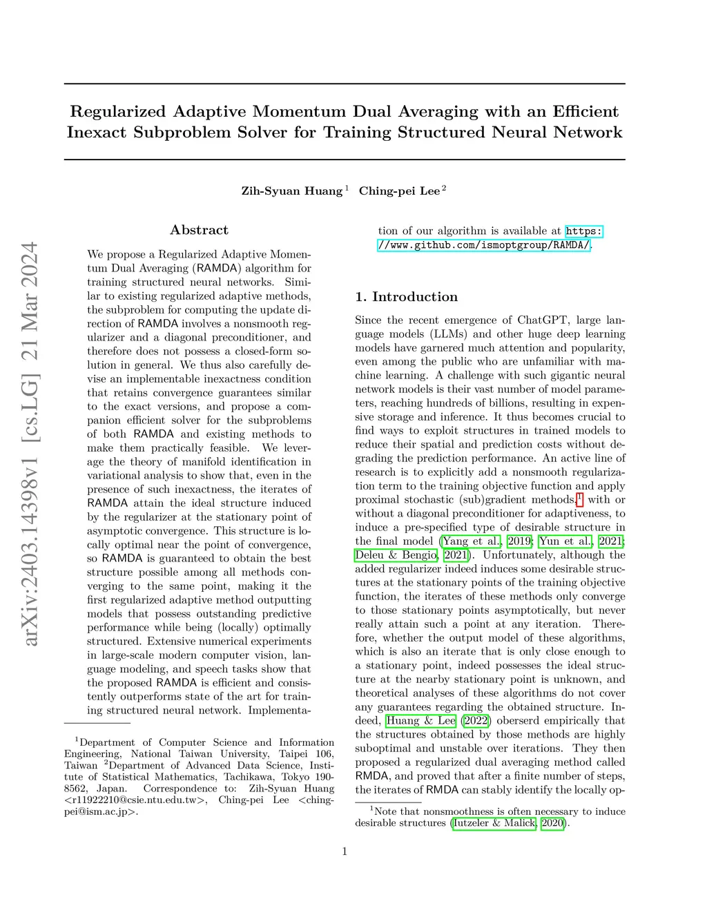 We propose a Regularized Adaptive Momentum Dual Averaging (RAMDA) algorithm for training structured neural networks. Similar to existing regularized adaptive methods, the subproblem for computing the update direction of RAMDA involves a nonsmooth regularizer and a diagonal preconditioner, and therefore does not possess a closed-form solution in general. We thus also carefully devise an implementable inexactness condition that retains convergence guarantees similar to the exact versions, and propose a companion efficient solver for the subproblems of both RAMDA and existing methods to make them practically feasible. We leverage the theory of manifold identification in variational analysis to show that, even in the presence of such inexactness, the iterates of RAMDA attain the ideal structure induced by the regularizer at the stationary point of asymptotic convergence. This structure is locally optimal near the point of convergence, so RAMDA is guaranteed to obtain the best structure possible among all methods converging to the same point, making it the first regularized adaptive method outputting models that possess outstanding predictive performance while being (locally) optimally structured. Extensive numerical experiments in large-scale modern computer vision, language modeling, and speech tasks show that the proposed RAMDA is efficient and consistently outperforms state of the art for training structured neural network. Implementation of our algorithm is available at http://www.github.com/ismoptgroup/RAMDA/.