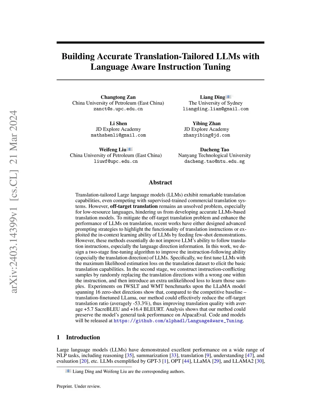 Building Accurate Translation-Tailored LLMs with Language Aware