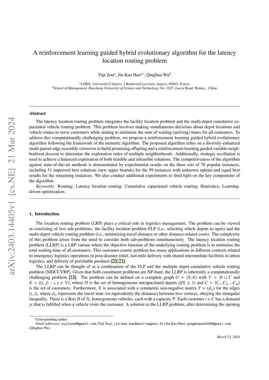 A reinforcement learning guided hybrid evolutionary algorithm for the