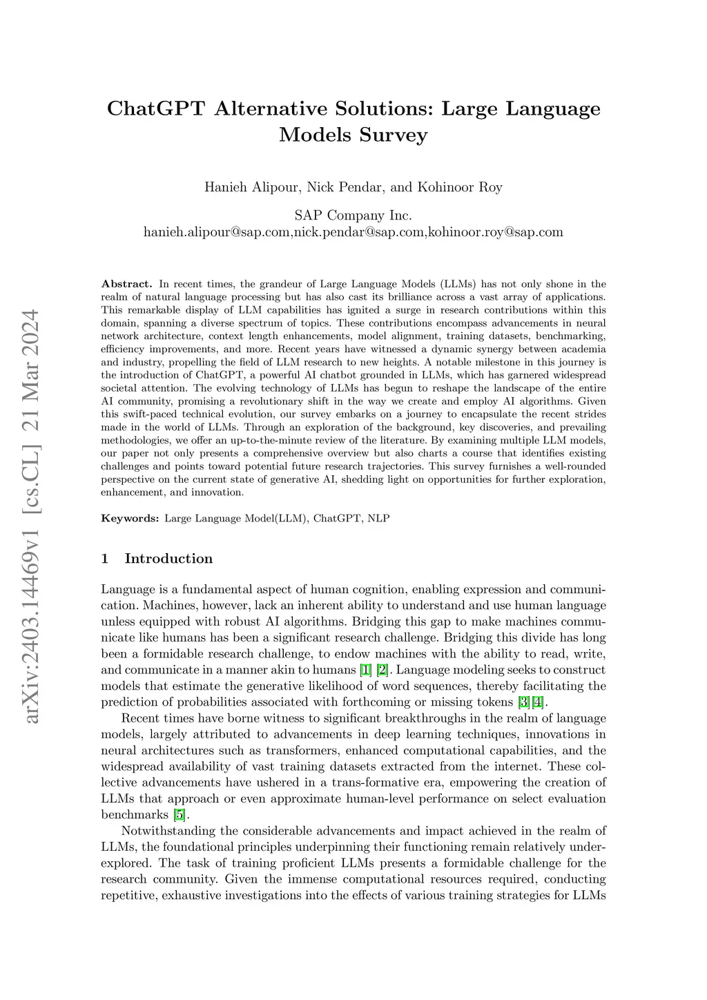 ChatGPT Alternative Solutions: Large Language Models Survey