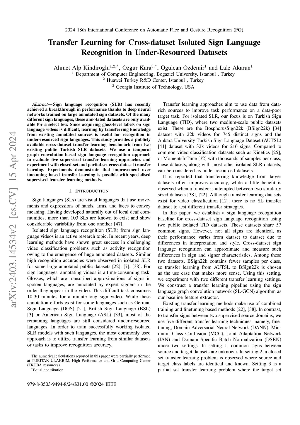 Transfer Learning for Cross-dataset Isolated Sign Language Recognition in Under-Resourced Datasets