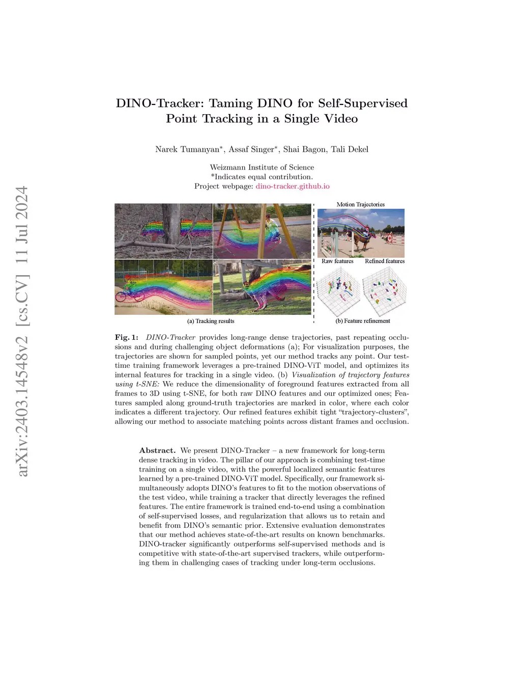 DINO-Tracker: Taming DINO for Self-Supervised Point Tracking in a Single