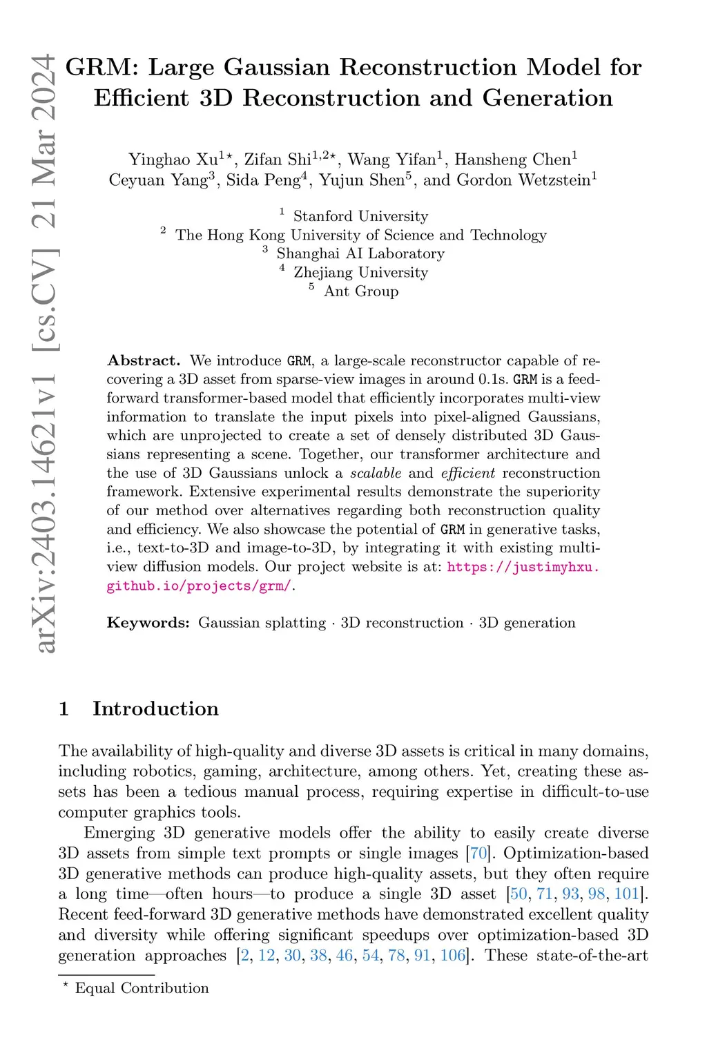 GRM: Large Gaussian Reconstruction Model for Efficient 3D Reconstruction