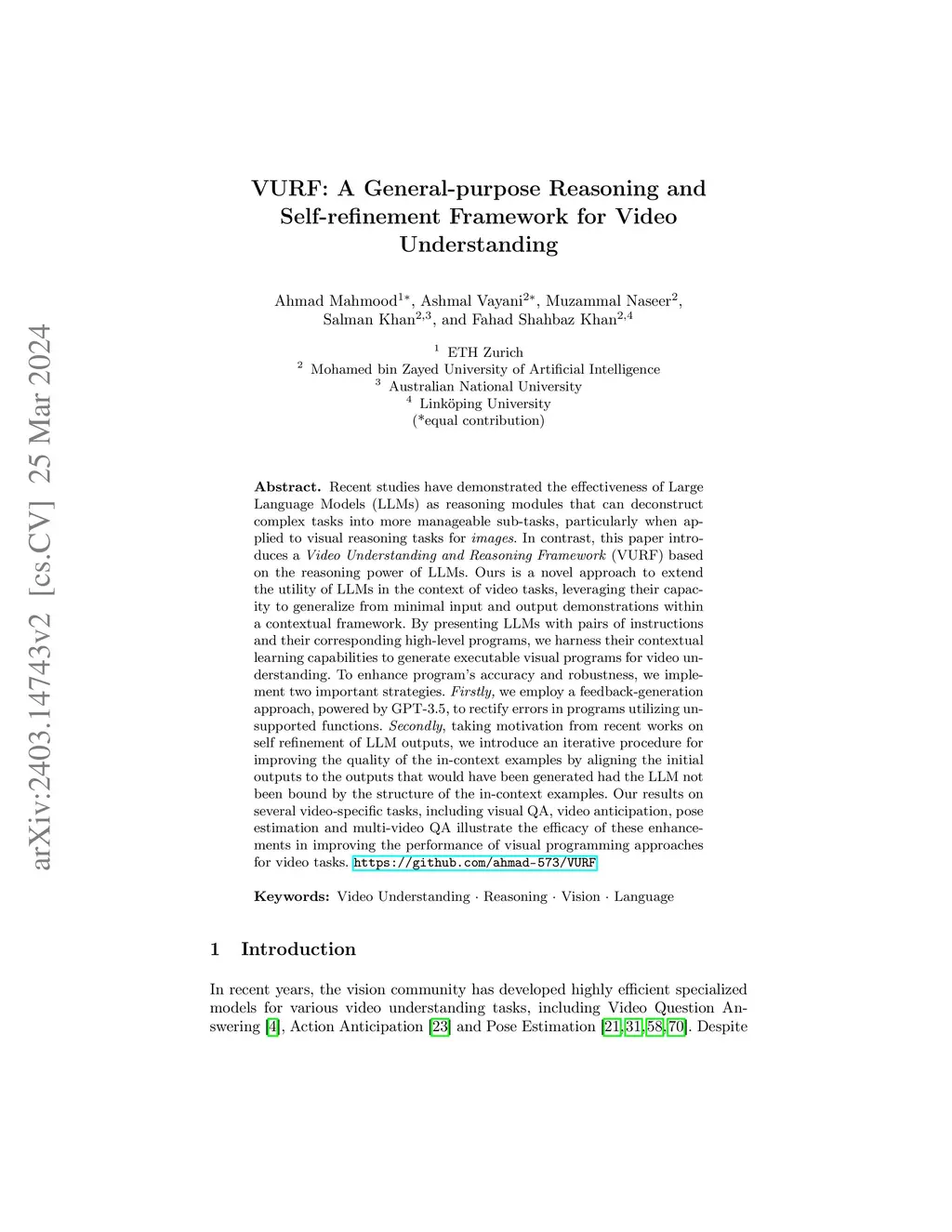 VURF: A General-purpose Reasoning and Self-refinement Framework for Video Understanding