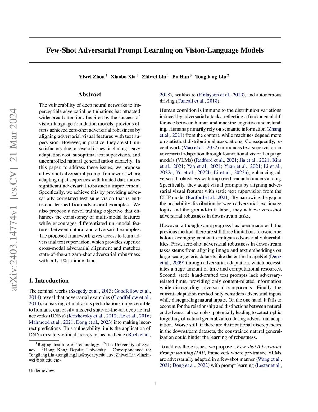 Few-Shot Adversarial Prompt Learning on Vision-Language Models