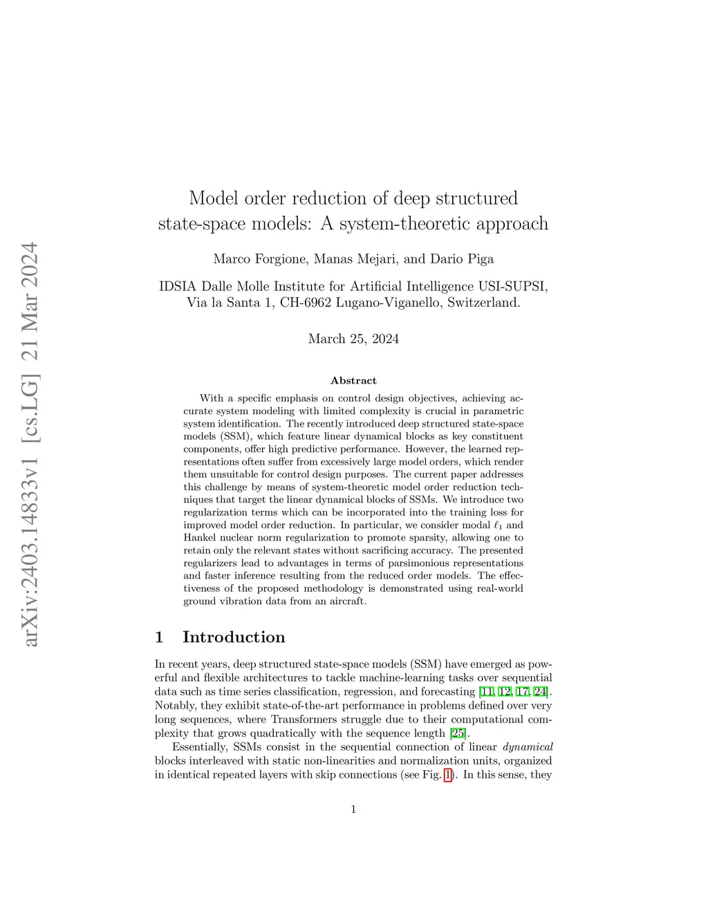 With a specific emphasis on control design objectives, achieving accurate system modeling with limited complexity is crucial in parametric system identification. The recently introduced deep structured state-space models (SSM), which feature linear dynamical blocks as key constituent components, offer high predictive performance. However, the learned representations often suffer from excessively large model orders, which render them unsuitable for control design purposes. The current paper addresses this challenge by means of system-theoretic model order reduction techniques that target the linear dynamical blocks of SSMs. We introduce two regularization terms which can be incorporated into the training loss for improved model order reduction. In particular, we consider modal and Hankel nuclear norm regularization to promote sparsity, allowing one to retain only the relevant states without sacrificing accuracy. The presented regularizers lead to advantages in terms of parsimonious representations and faster inference resulting from the reduced order models. The effectiveness of the proposed methodology is demonstrated using real-world ground vibration data from an aircraft.