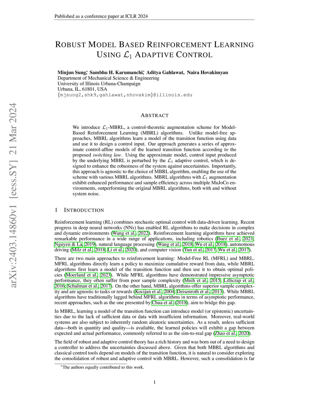 Robust Model Based Reinforcement Learning Using Adaptive