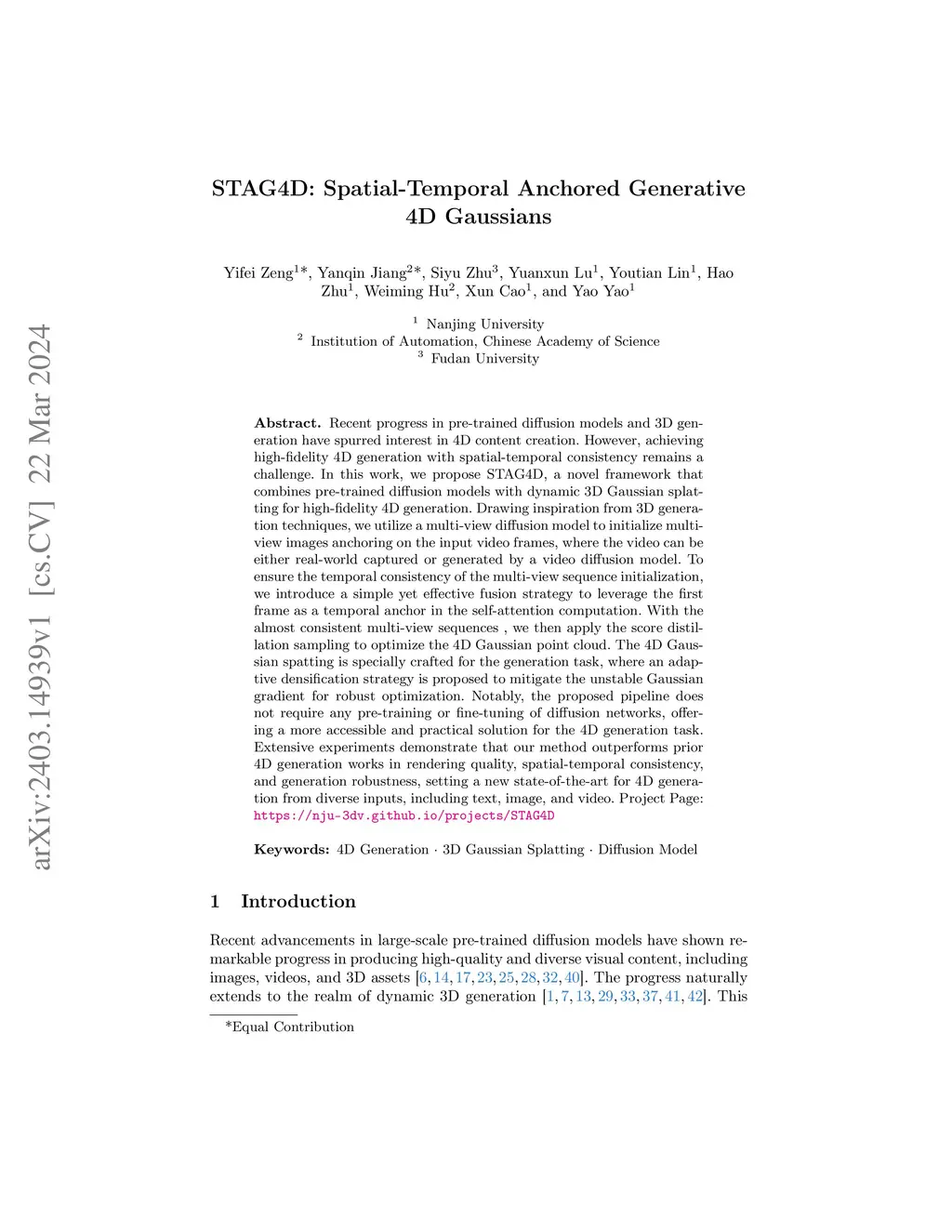 STAG4D: Spatial-Temporal Anchored Generative 4D Gaussians