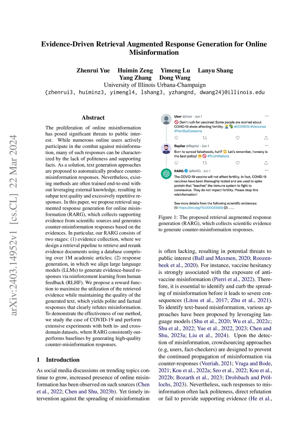 Evidence-Driven Retrieval Augmented Response Generation for Online