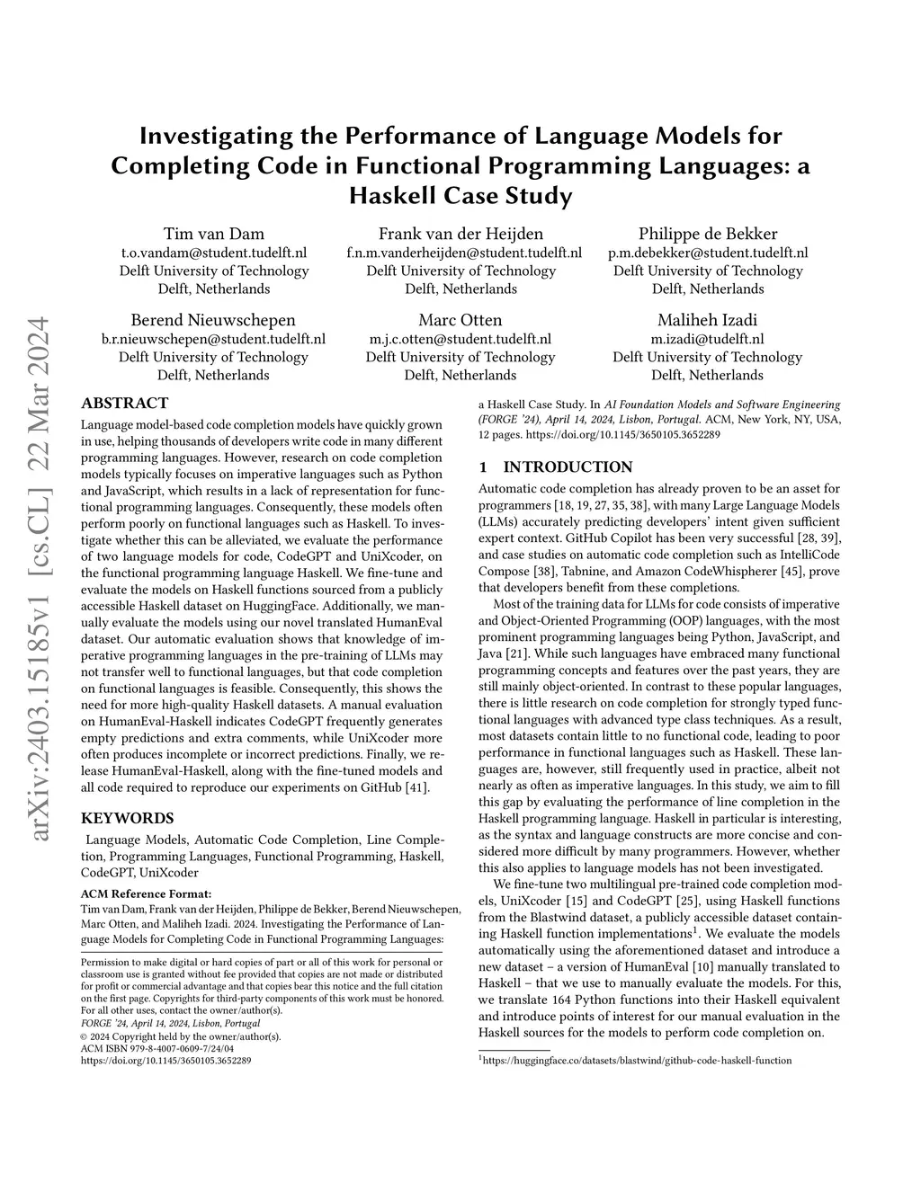 Language model-based code completion models have quickly grown in use, helping thousands of developers write code in many different programming languages. However, research on code completion models typically focuses on imperative languages such as Python and JavaScript, which results in a lack of representation for functional programming languages. Consequently, these models often perform poorly on functional languages such as Haskell. To investigate whether this can be alleviated, we evaluate the performance of two language models for code, CodeGPT and UniXcoder, on the functional programming language Haskell. We fine-tune and evaluate the models on Haskell functions sourced from a publicly accessible Haskell dataset on HuggingFace. Additionally, we manually evaluate the models using our novel translated HumanEval dataset. Our automatic evaluation shows that knowledge of imperative programming languages in the pre-training of LLMs may not transfer well to functional languages, but that code completion on functional languages is feasible. Consequently, this shows the need for more high-quality Haskell datasets. A manual evaluation on HumanEval-Haskell indicates CodeGPT frequently generates empty predictions and extra comments, while UniXcoder more often produces incomplete or incorrect predictions. Finally, we release HumanEval-Haskell, along with the fine-tuned models and all code required to reproduce our experiments on GitHub (https://github.com/AISE-TUDelft/HaskellCCEval).
