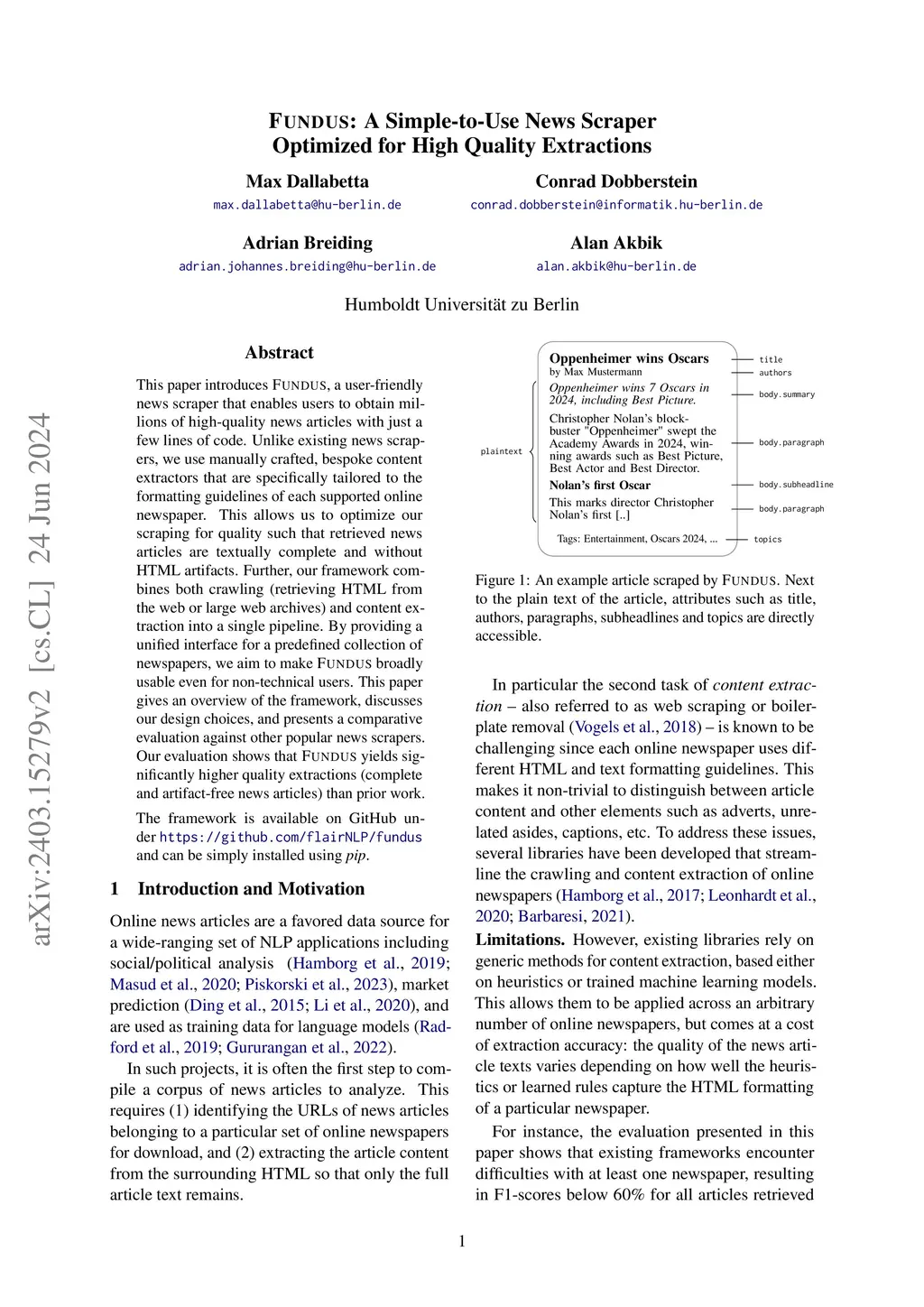 Fundus: A Simple-to-Use News Scraper Optimized for High Quality