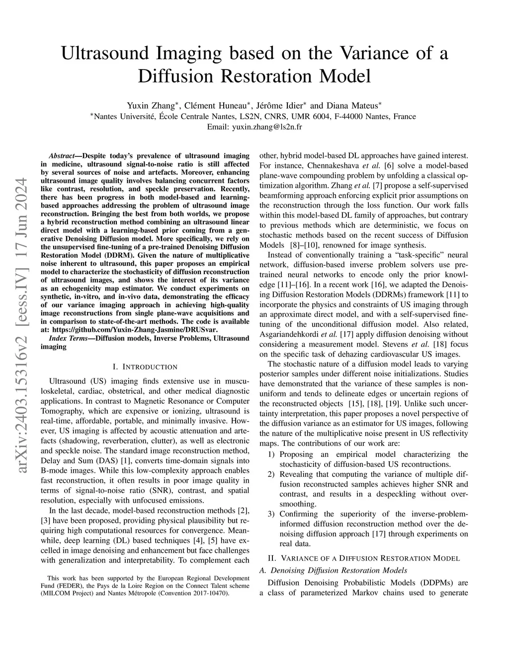Ultrasound Imaging based on the Variance of a Diffusion Restoration