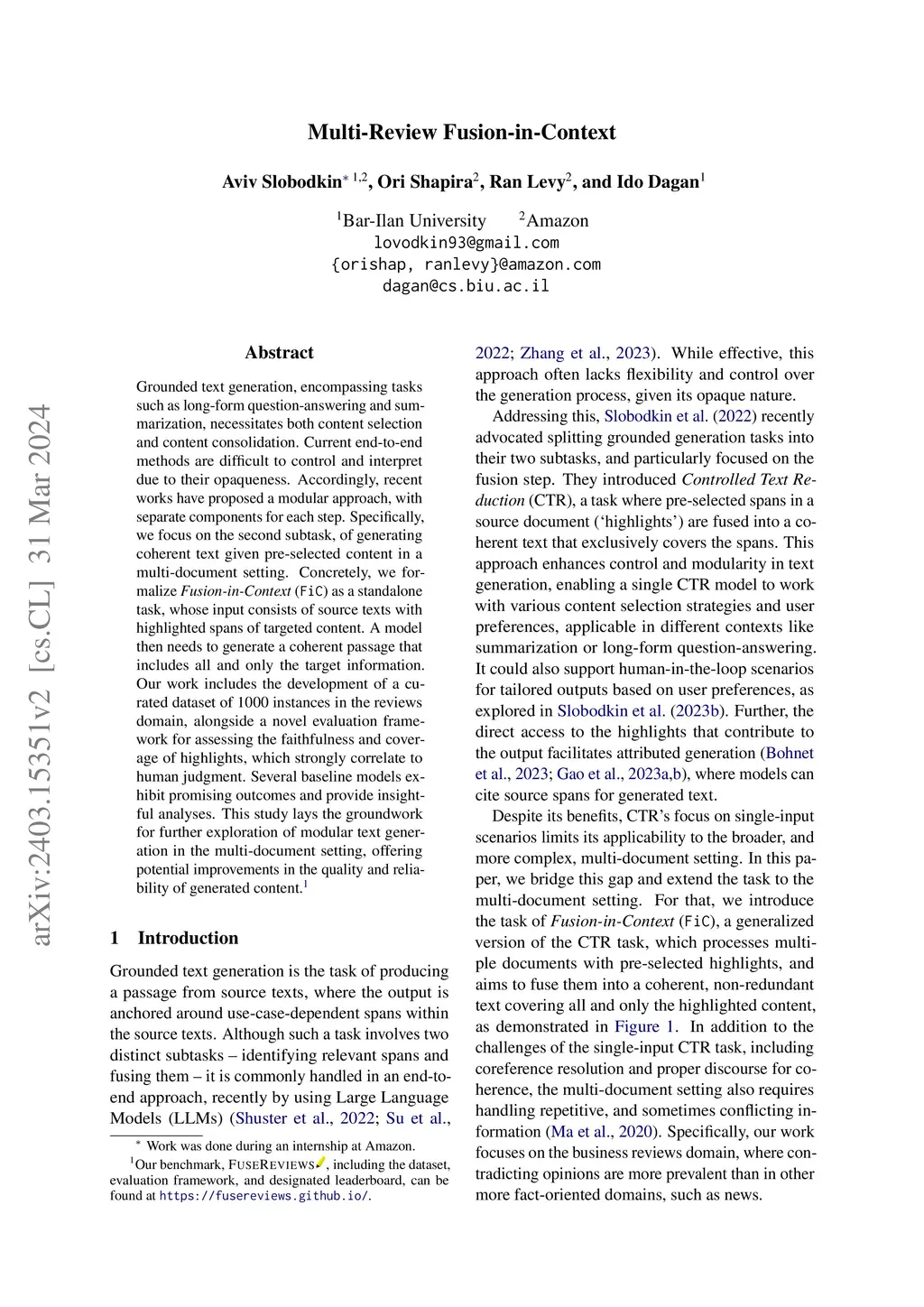 Multi-Review Fusion-in-Context