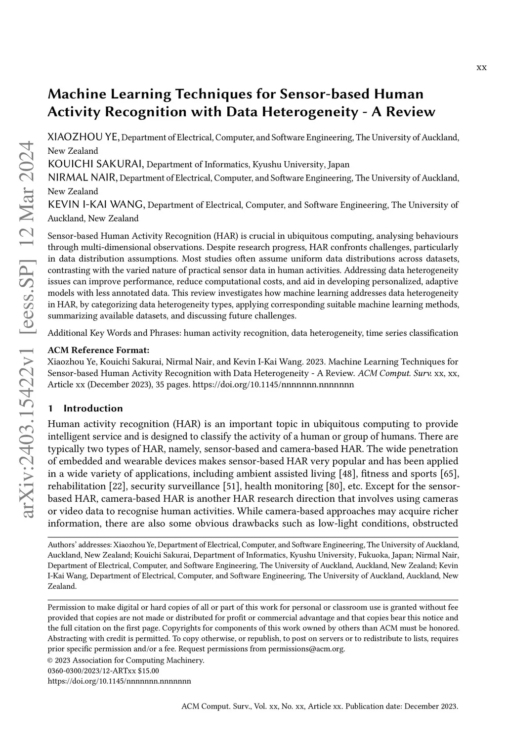 Machine Learning Techniques for Sensor-based Human Activity Recognition