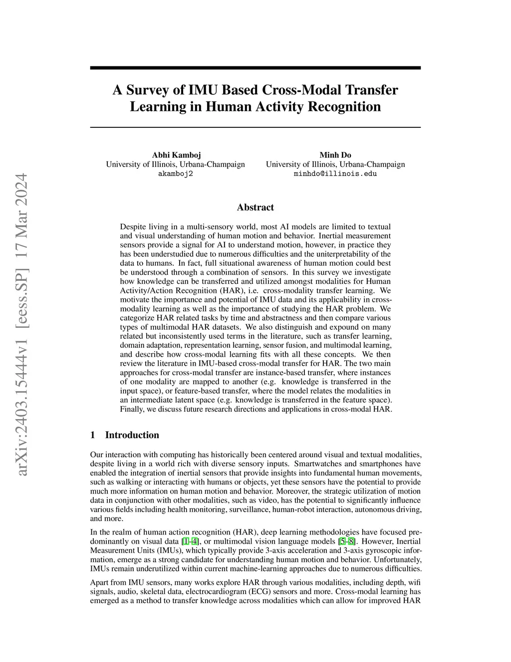 A Survey of IMU Based Cross-Modal Transfer Learning in Human Activity