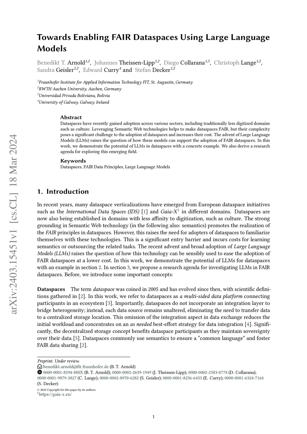 Dataspaces have recently gained adoption across various sectors, including traditionally less digitized domains such as culture. Leveraging Semantic Web technologies helps to make dataspaces FAIR, but their complexity poses a significant challenge to the adoption of dataspaces and increases their cost. The advent of Large Language Models (LLMs) raises the question of how these models can support the adoption of FAIR dataspaces. In this work, we demonstrate the potential of LLMs in dataspaces with a concrete example. We also derive a research agenda for exploring this emerging field.
