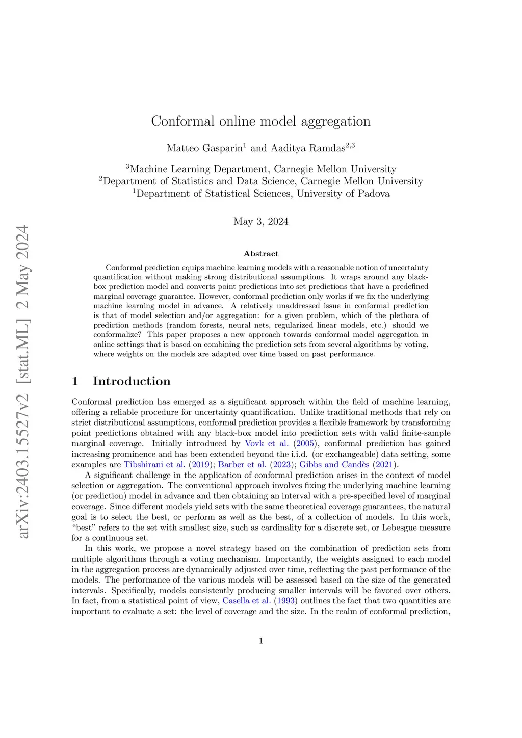 Conformal online model aggregation