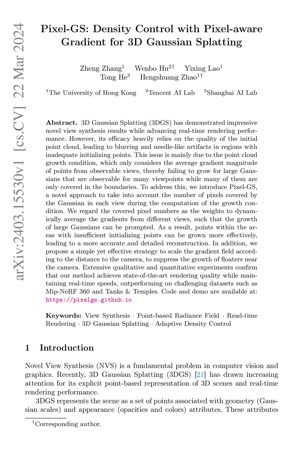 Pixel-GS: Density Control with Pixel-aware Gradient for 3D Gaussian
