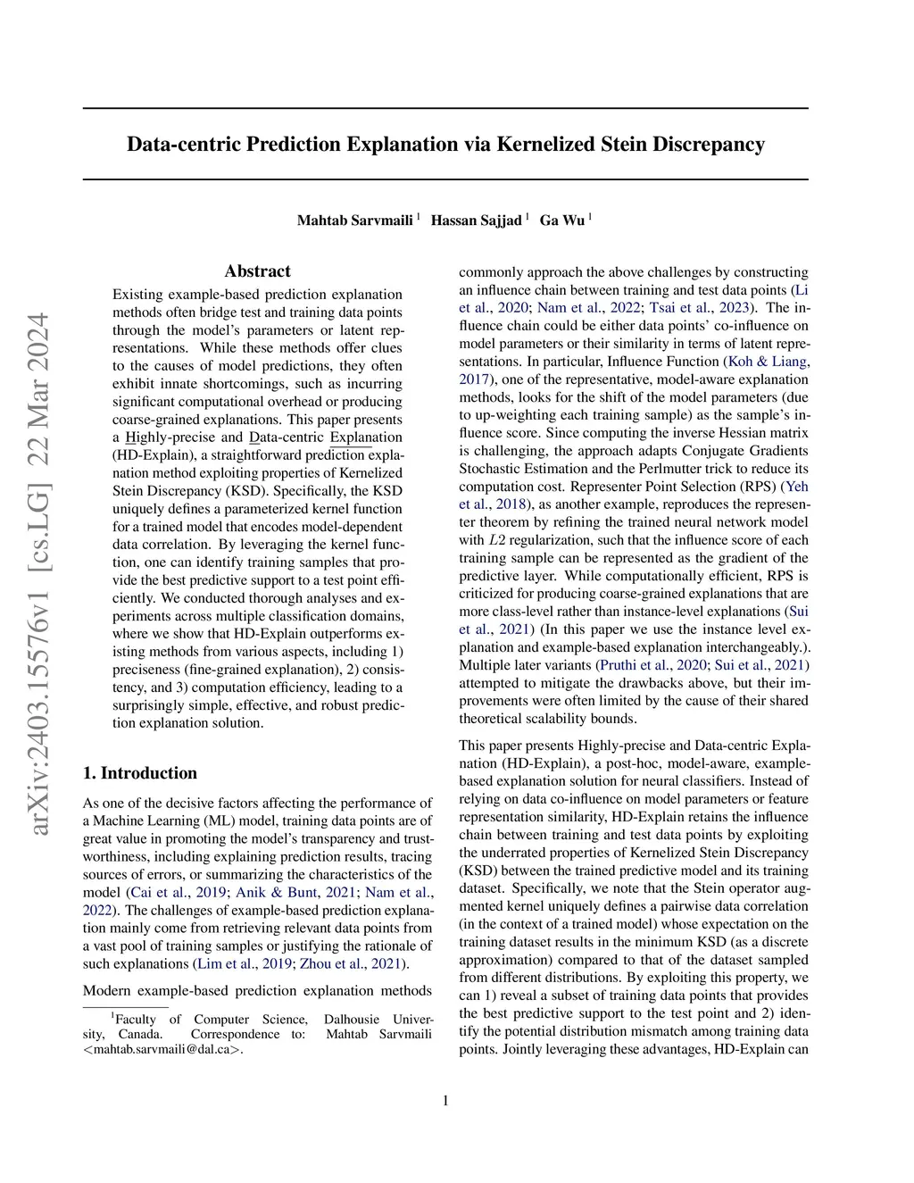 Existing example-based prediction explanation methods often bridge test and training data points through the model's parameters or latent representations. While these methods offer clues to the causes of model predictions, they often exhibit innate shortcomings, such as incurring significant computational overhead or producing coarse-grained explanations. This paper presents a Highly-precise and Data-centric Explan}ation (HD-Explain) prediction explanation method that exploits properties of Kernelized Stein Discrepancy (KSD). Specifically, the KSD uniquely defines a parameterized kernel function for a trained model that encodes model-dependent data correlation. By leveraging the kernel function, one can identify training samples that provide the best predictive support to a test point efficiently. We conducted thorough analyses and experiments across multiple classification domains, where we show that HD-Explain outperforms existing methods from various aspects, including 1) preciseness (fine-grained explanation), 2) consistency, and 3) computation efficiency, leading to a surprisingly simple, effective, and robust prediction explanation solution.